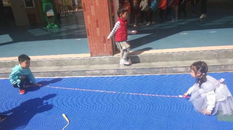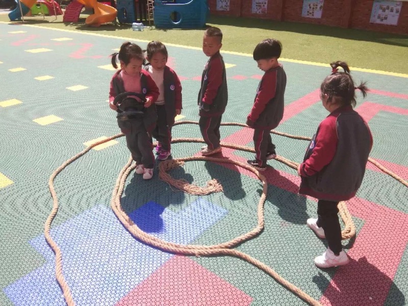 嘟嘟嘟......请系好安全带,扶好扶手,列车即将出发。一根普通的麻绳就能变成一条迷宫路,成为了孩子们“开车”游戏的铁轨道路。