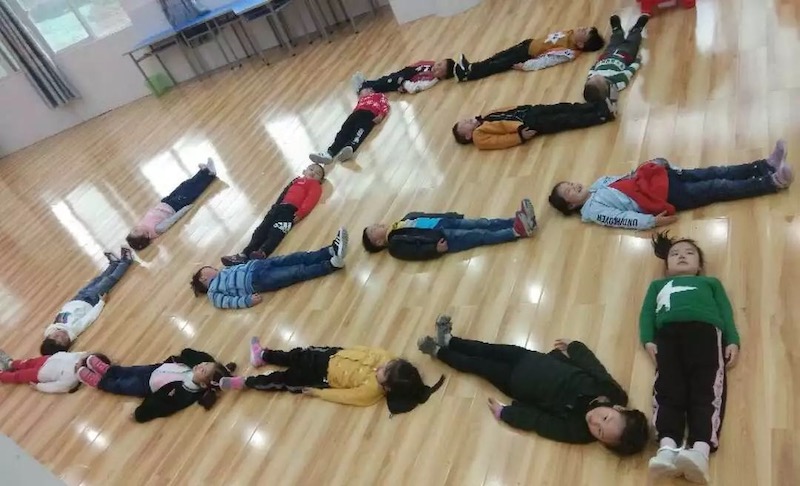 小伙伴们齐心协力一起合作,有的在奔跑传递,有的大声指挥着,有的蹲下身子牵绳子,一番“大战”之后,一个充满着神秘气息的迷宫呈现在了大家面前。