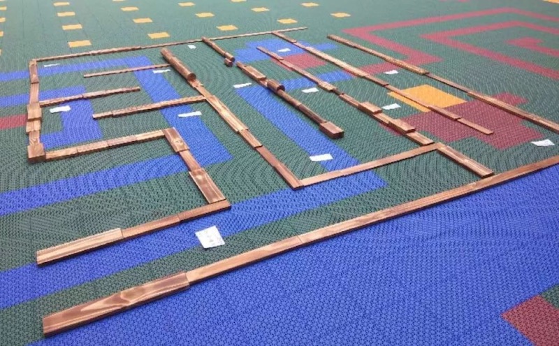 寻找一片宽阔的场地,利用木质积木搭建迷宫线路。丈量地形,划分通道,思考线路,设置问题。