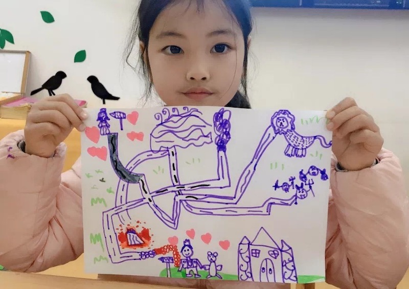 “老师,这是我画的动物园里的路,这里的路很长”,“老师,这是我画的我奶奶家的路,我奶奶家在农村,所以路口特别多......”,“老师,你知道我这是画的什么路吗?嘻嘻,悄悄的告诉你哦,这是通往月亮上的路.....”