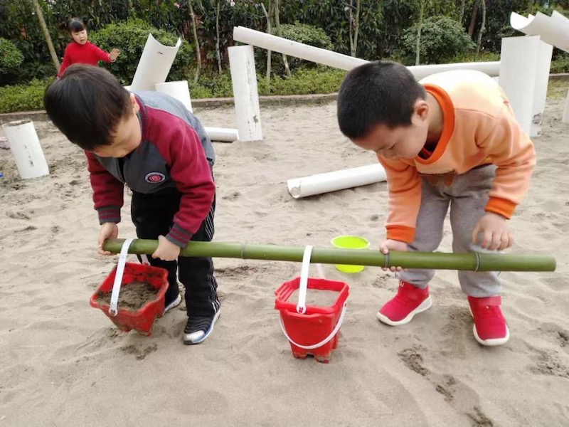 在孩子们的通力合作下一个运沙乐园就出来啦!