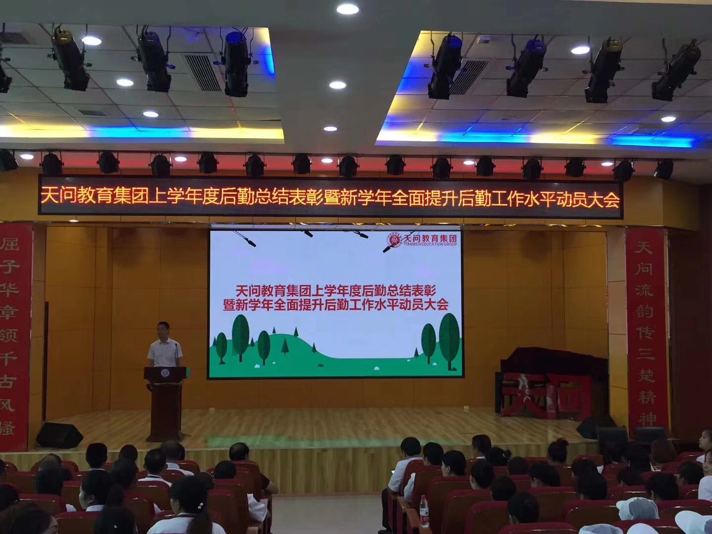 2019年9月5日下午1点半,天问教育集团后勤部年度总结表彰暨新学年工作全面提升动员大会在橘颂厅隆重举行,集团三校区243名后勤职工参加了会议。...