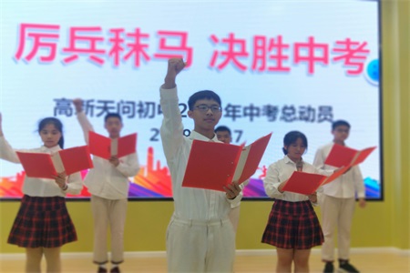 本网讯(通讯员 裴燕妮)烧玉要烧三日满,辨才须待七年期。三年磨一剑,利刃已成,只待六月试锋芒!2019年6月17日,高新天问初中九年级师生共同参加中考...