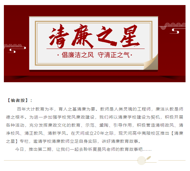 百年大计教育为本,育人之基清廉为要。教师是人类灵魂的工程师,廉洁从教是师德之根本。为进一步加强学校党风廉政建设,我们将以清廉学校建设为契机,积极开展各...