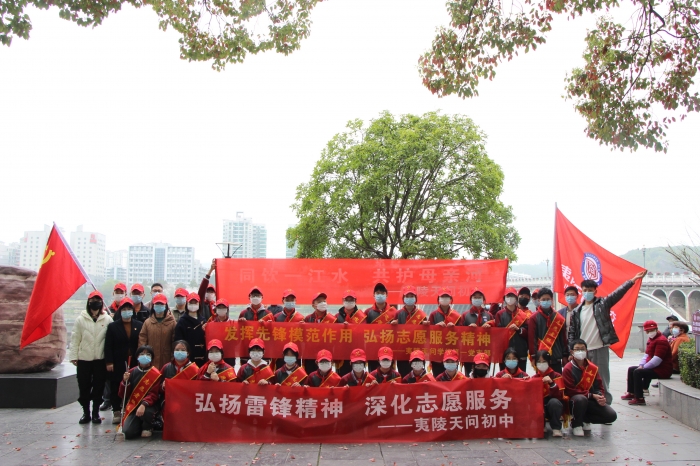 夷陵天问初中党工团教师代表及学生志愿者前往夷陵区黄柏河边,以“同饮长江水,保护母亲河”为主题,开展了“弘扬雷锋精神,深化志愿服务”的文明志愿行动。...