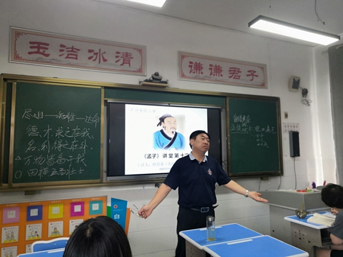 7月8日上午,天问书院小学全体老师齐聚402班教室,聆听天问书院名誉院长顾景荣带来的《孟子》讲坛第十二讲。他带领老师们穿越千年时空,走进孟子,感悟孟子...